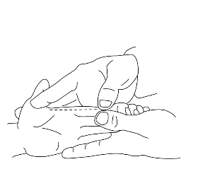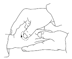 操作:拇指甲掐5次,称掐四横纹;或四指并拢,自食指中节横纹处推向小指中节横纹100次,称推四横纹。
