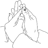 操作:用指掐5次、揉50次、捣30次,称掐,捣、揉小天心(图7-23)。