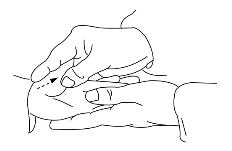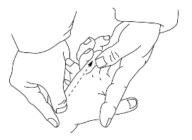 操作: 用拇指、食指指甲对掐5次或拇指、食指螺纹面对揉50次称掐、揉端正。