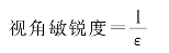 物体对人眼的张角称作视角,对应视觉周围很小范围,在良好照明时,人眼能分辨的物点间最小视角称作视角鉴别率ε,满足下式