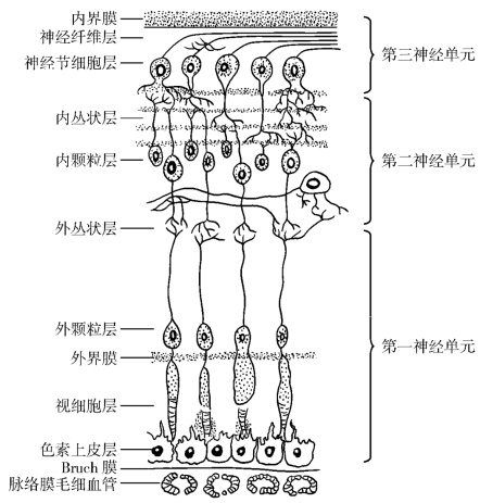视觉信息的传递与处理是通过生物电活动而实现的。当光或图像刺激通过眼内屈光间质投射到视网膜上,光感受器吸收光量子,经过从光能到化学能,再到电能的光电转换过程,神经冲动经过视网膜神经网络与视神经视路,最终将视觉信息传递到大脑枕叶皮质,形成一个完整而清晰的图像。