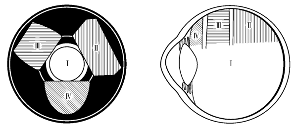 Ⅰ为中央圆形凹面镜;Ⅱ为梯形镜;Ⅲ为方形镜;Ⅳ为半圆舌形镜