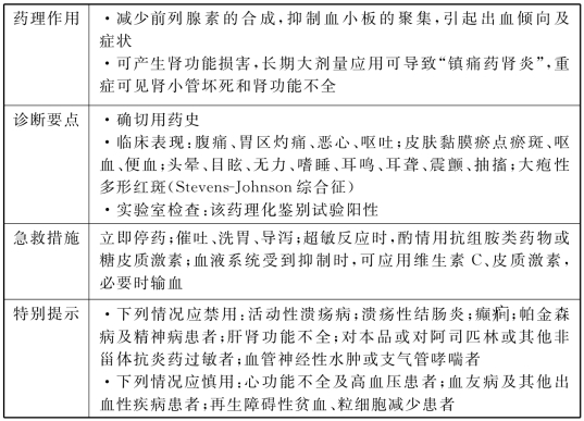 ●下列情况应禁用:活动性消化性溃疡或其他原因引起的消化道出血;血友病或血小板减少症;有阿司匹林或其他非甾体抗炎药过敏史者,尤其是出现哮喘、神经血管性水肿或休克者禁用。