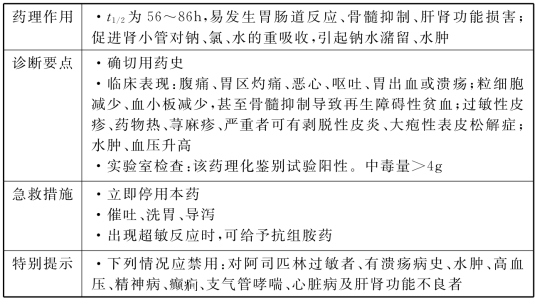 ●临床表现:腹部不适感、胃痛、恶心、呕吐、食欲缺乏;休克;皮肤黏膜眼综合征(Stevens-Johnson综合征);急性肾衰竭、肾病综合征;水肿、皮疹及荨麻疹。