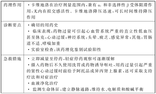 ●临床表现:药物过量可引起心血管系统症状,表现为严重的直立性低血压甚至休克,心动过缓;神经系统:头晕、疲乏、感觉异常;其他:胃肠道不适、哮喘加重。