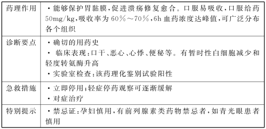 ●注意事项:本品抑制胃酸分泌的作用较H2受体拮抗药弱,临床已不再单独用于治疗溃疡病。用药期间应避免烟、酒及刺激性食物和精神创伤。孕妇及哺乳期妇女用药安全性尚不明确。