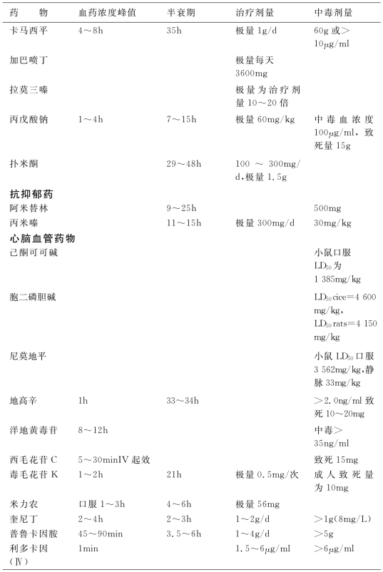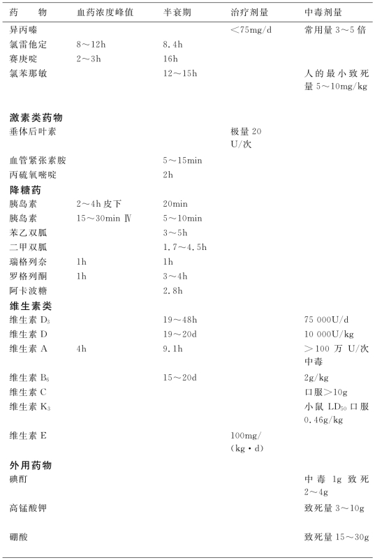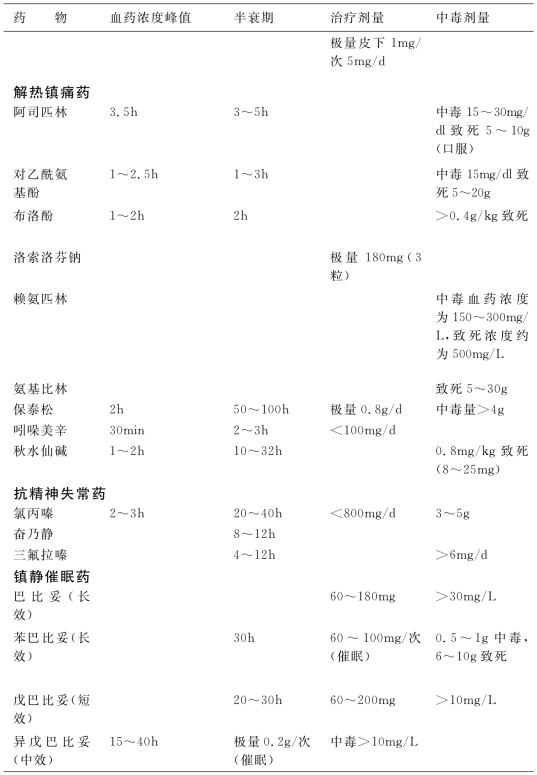 1.4.15附录E 常用药物中毒剂量速查表