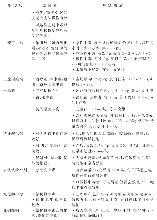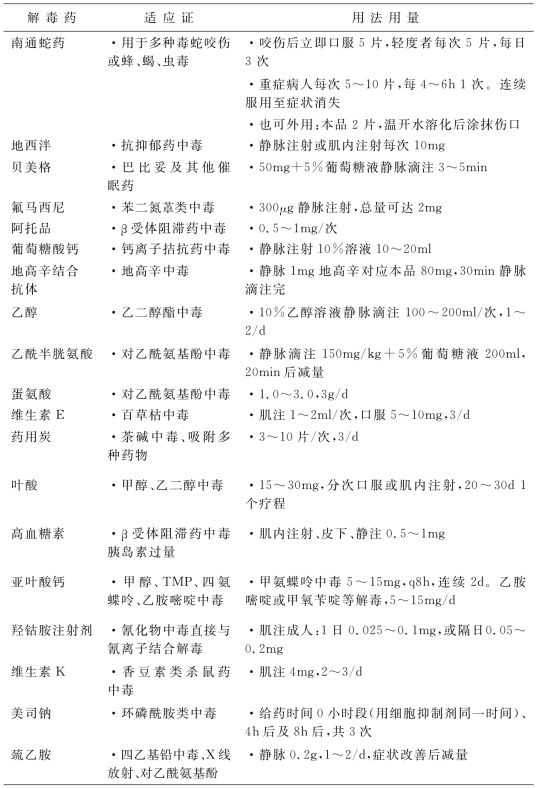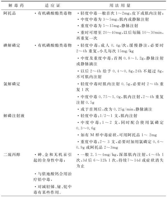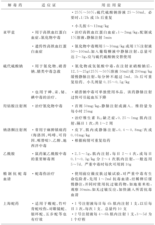 1.4.17附录G 常用解毒药物适应证和用法用量