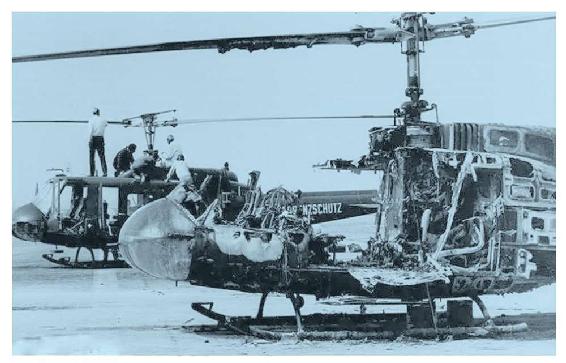 枪声一响,直升机的驾驶员按照事先的约定,拔腿就跑。其中两人安全脱险,两人被击中,重伤。