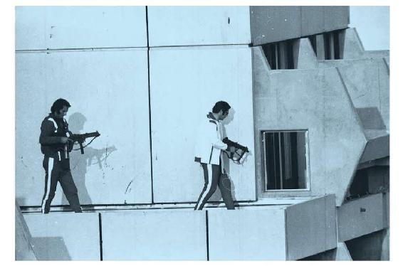 “黑色九月”的恐怖分子后来在阳台上被拍摄下的镜头