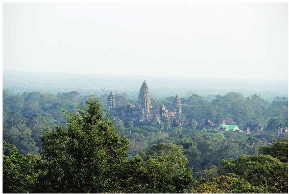 从巴肯山看到的吴哥寺。巴肯山位于从吴哥王城到吴哥寺大路的西侧,是眺望吴哥窟最佳地点。
