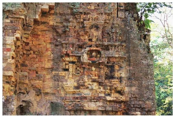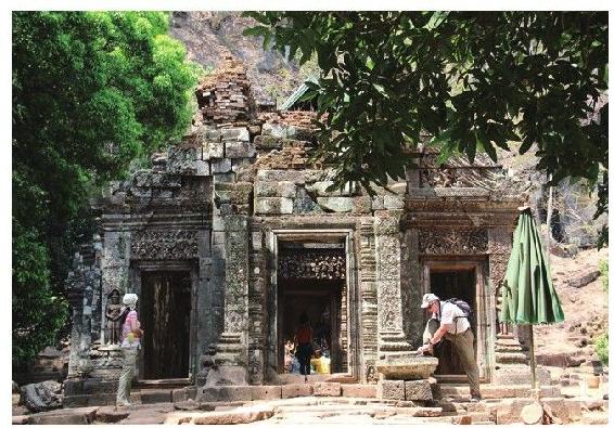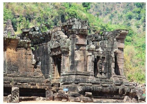 瓦普寺正门。主殿的顶部已经坍塌,只留下了下部被当地人改造成了佛寺。