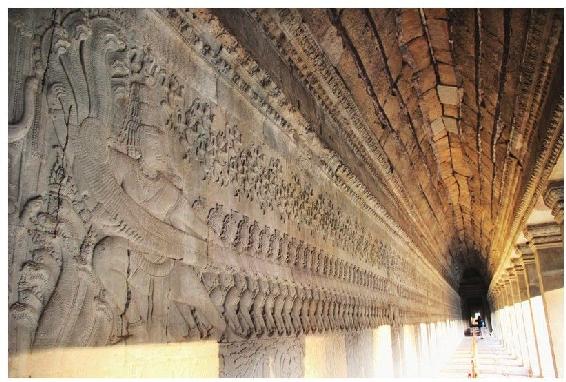 吴哥窟的雕塑。这里拥有世界上最长、最复杂的古代浮雕。