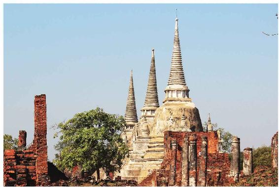 阿瑜陀耶的三支塔。这三座著名的佛塔出现在了泰国一泰铢的硬币上。