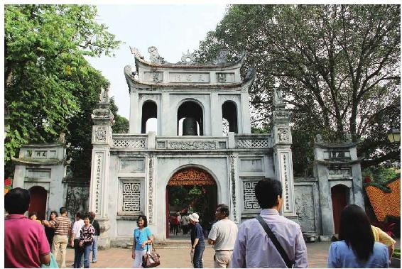 河内的文庙。文庙表现出越南文化和中国的亲缘关系,这里也有科举考试,所考的题目也大都出自中国的经典。