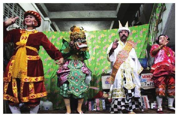 老二卢茂向观众展示他的妻子。他的妻子曾经登上过Lonely Planet的封面。