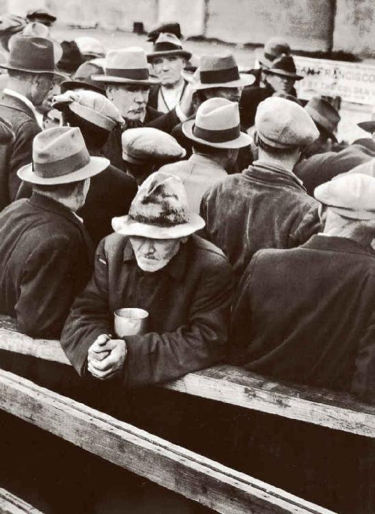 资本主义社会,通过剩余价值的形式在工人身上榨取剩余劳动,剩余价值率=剩余劳动时间/必要劳动时间,剩余价值率是资本家的剥削率,是工人受资本家剥削程度的准确表现。1929-1933年资本主义世界爆发了空前的经济危机,为了摆脱危机,列强各国选择了不同的道路。美国实施了罗斯福新政,采取国家干预方式来摆脱危机。图中是全球性经济危机时等待发放救济物资的人们。