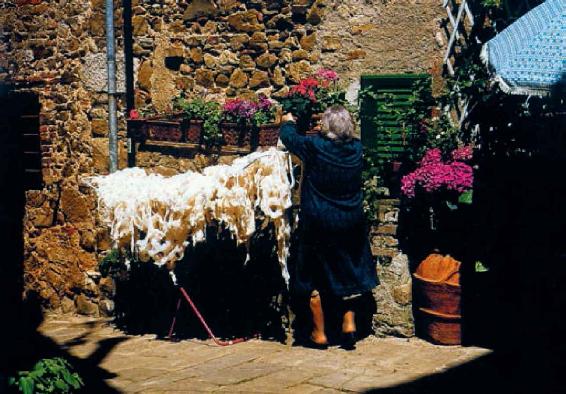 商品的生产不仅取决于劳动力,而且还受制于提供劳动资料和劳动材料的生产。原料生产力的提高,或低廉的价格,会使商品的价格也随之下降。图中家庭出产的羊毛就是生产材料的来源。