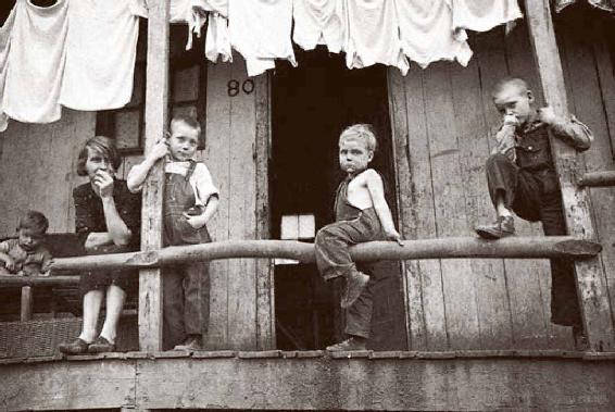 近代科技不断发展,机器大量普及,导致越来越多的人失业,也加剧了工人阶级的贫困。图为20世纪上半叶美国佛罗里达州的一个正处于失业危机中的家庭,其乐融融的家庭气氛掩饰不了木板房的简陋和生活的贫困。