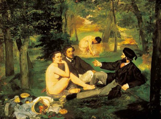 工场手工业的分工提高了生产效率,促进了社会生产力的发展,但它是以资本家对人的绝对权威控制为前提,工场这个社会生产机构只是属于资本家。而社会分工使独立的商品生产者互相对立,他们只承认竞争强加在他们身上的压力。图为马奈1863年的画作《草地上的午餐》,新兴的资产阶级正在迅速积累财富,他们有了闲适的生活,也有了与过去截然不同的趣味和审美。