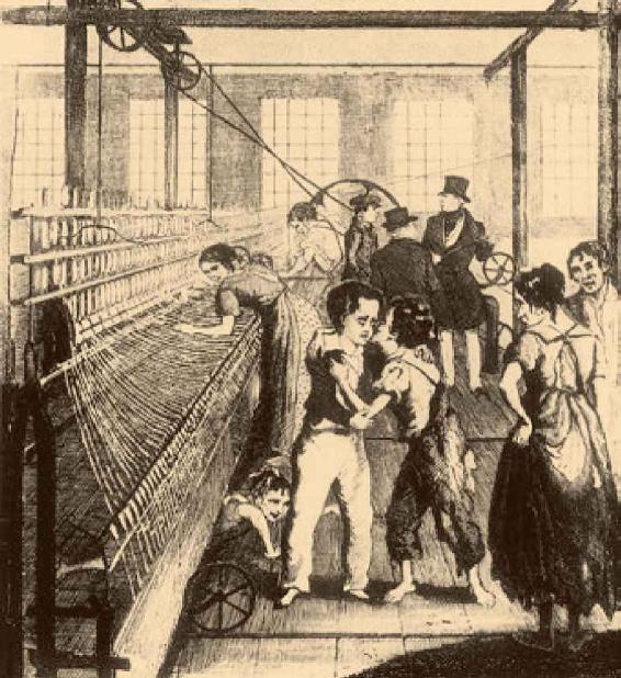 资本的积累对工人阶级命运会产生非常不利的影响。因为资本的积累,使扩大规模的再生产成为可能,一方面生产出更多更大的资本家,另一方面再生产出更多的雇佣工人,资本积累无形中就演变成无产阶级的增加和受剥削范围的扩大。图中英国工业革命时期的纺织厂里除了妇女还出现了儿童的身影。