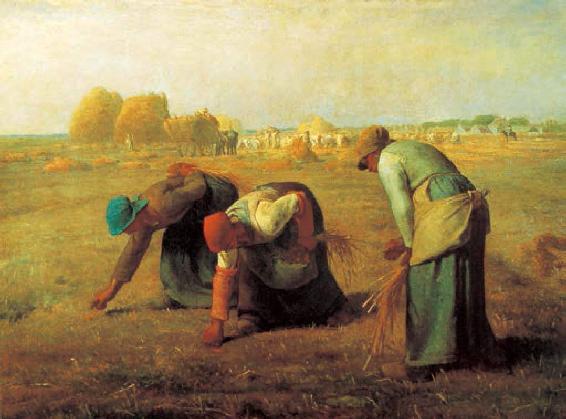 农业一旦被资本主义的生产方式所占领,随着资本的积累和生产力的提高,对农业工人人口的需求就会绝对地减少,被排挤的大批农业工人只有在工业需要劳动力时才能流入城市。他们只能拿到极低的工资,挣扎在生活的最边缘。让·弗朗索瓦·米勒的这幅绘画史上最著名的农村题材作品,通过描绘麦田中捡拾麦穗的贫穷农妇,使工业化侵蚀下的农村充满了感伤与人性尊严的宁静。