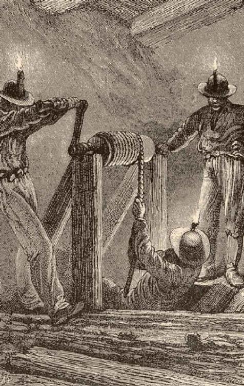 资本积累会造成超出工人人口自然增长的劳动供给,产生出超出资本增殖平均需要的过剩人口。相对过剩人口增多会对在业工人造成极大的压力,致使在业工人不得不过度劳动和忍受资本家的摆布。图中工人正在简陋而危险的工作环境下工作。
