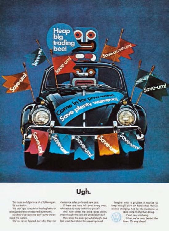 对于货币贮藏的资本家,占有由制造生产资料的生产资料构成的剩余产品,是潜在的追加不变资本。而这些剩余产品,只有在商品售卖的资本家手里,才能执行追加的不变资本的职能。图中是20世纪60年代德国大众轿车的促销广告。