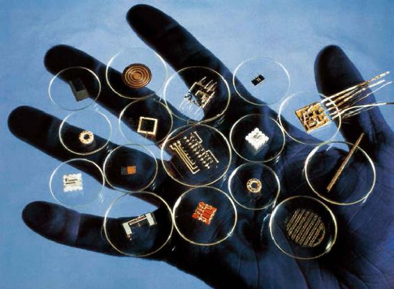 人类进化的历史说明,每一次生产工具的变革,必然会对社会经济产生巨大的影响。从石器时代到铁器时代,到铜器时代、手推磨时代,以及后来的机器工业时代和现在的电子信息时代,无一不是如此。而且一次又一次的重大变革的间隙越来越短,强度越来越大。美国工程师杰克·基尔比发明的集成电路,就为现代信息技术和开发电子产品的各种功能铺平了道路,革新了我们的工业,同时也改变了我们生活的世界。图中展示的是多种集成电路板块,其中也包括计算机芯片。