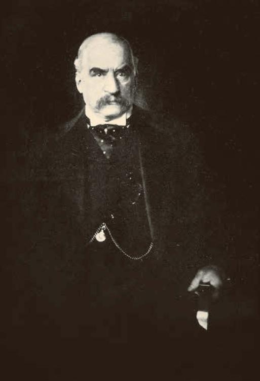 被贮藏的货币,因为离开了流通领域,在一段时间内失去了流通能力。但将其积聚在银行中,就变成了可供支配的资本、“可贷资本”、货币资本,它们便不再是被动的东西,而是能动的,生利的东西。图中是被誉为“信用楷模”的美国大名鼎鼎的银行家J.P.摩根。20世纪初,美国铁路建设引发了泡沫经济,正是摩根银行成为铁路发展的关键性财源,避免了金融大恐慌的灾难。