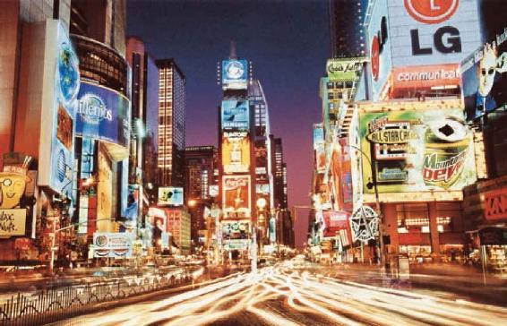 商业资本家必须预付一定数量的货币。专门进行商品的买卖,并通过经营商品而实现增殖,获得商业利润,如果只有流通当事人而没有他们独立的投资及其增殖,则活动在流通领域始终是产业资本的职能形态,而不是独立的商业资本。图中20世纪80年代纽约时代广场上,鳞次栉比的商业大楼,惹眼的巨幅广告牌不仅为这座冬日里的现代都市平添着生气,也是商品经营者为商品的买卖所做的合理、必要的投资。