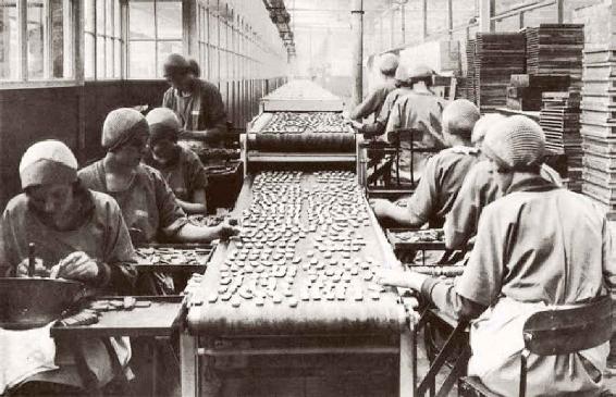 商品周转的时间长短会对利润率产生直接的影响。即使总资本相同,资本周转时间不同,利润也会不同。资本周转时间的缩短意味可变资本部分提高了效率。配备先进的生产资料,改进工作流程都会提高生产效率,从而缩短商品周转的时间。图中是女工们正在流水线上有序地工作。