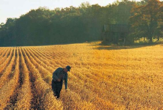 16世纪新航线的开辟与新大陆的发现,使世界上原来相互隔绝的地区沟通起来,欧洲和亚洲、非洲、美洲之间的贸易日益发展,世界市场得以扩大。美洲所特有的玉米、马铃薯等农产品传播到世界各地,增加了人类食物供应,促进了人口数量的增长。图中是美国俄亥俄州的一块种有大豆和玉米的金色田野。