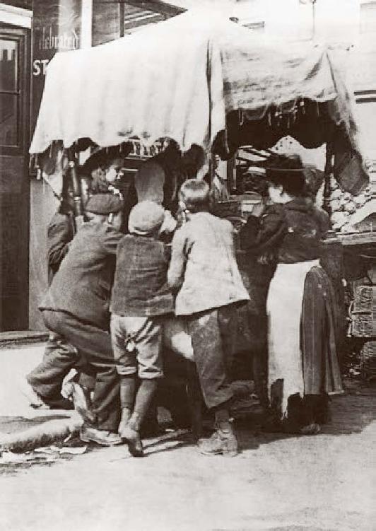 作为普通的商品,购买者支付的是它的价值。但职能资本家购买的是资本商品的使用价值,支付的不是它的价值。贷出者和借入者之间,并没有发生价值的形式变化。货币在没有任何等价物的情况下付出去,经过一定时间交回来,贷出者总是同一价值的所有者。图中人们正围着小货车饶有兴趣地选购着商品。