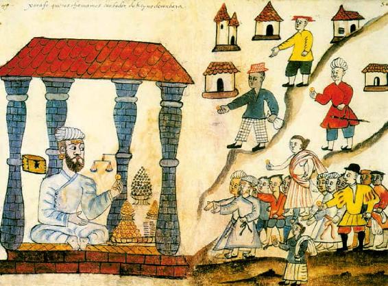 企业主借用货币资本家的资金,经营所得的平均利润,扣除利息后的余额就是他的企业利润。而货币资本家是凭借他借贷出的资本的所有权获取他应得的利息。图中是在资本主义萌芽阶段,人们为了减少不同的货币在贸易中带来的不便,纷纷赶往货币兑换商那里兑换货币,这种用兑换货币来生利的方式也是利用钱来生钱的一种。