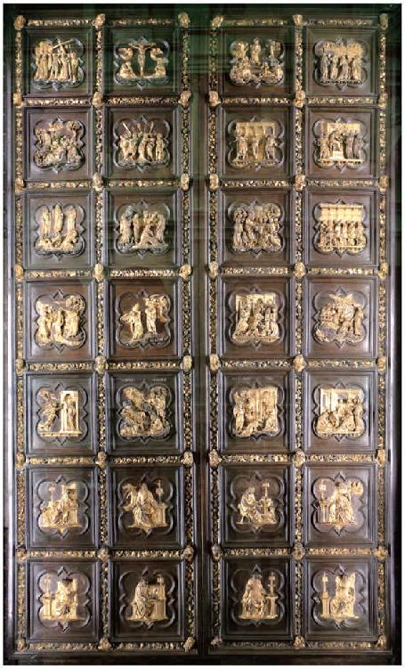 对于这两件作品孰优孰劣,34名评委各执一词争执不下,最终由洗染商业行会定夺。行会询问了各自的报价,最终,吉贝尔蒂的作品因一次浇注且用铜量少省钱而胜出。