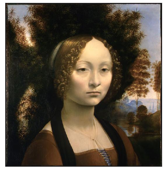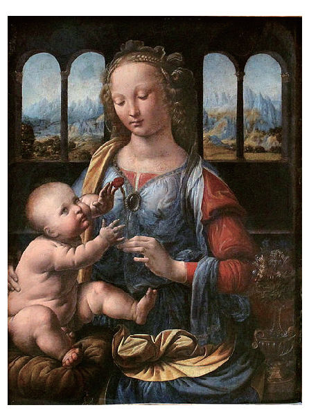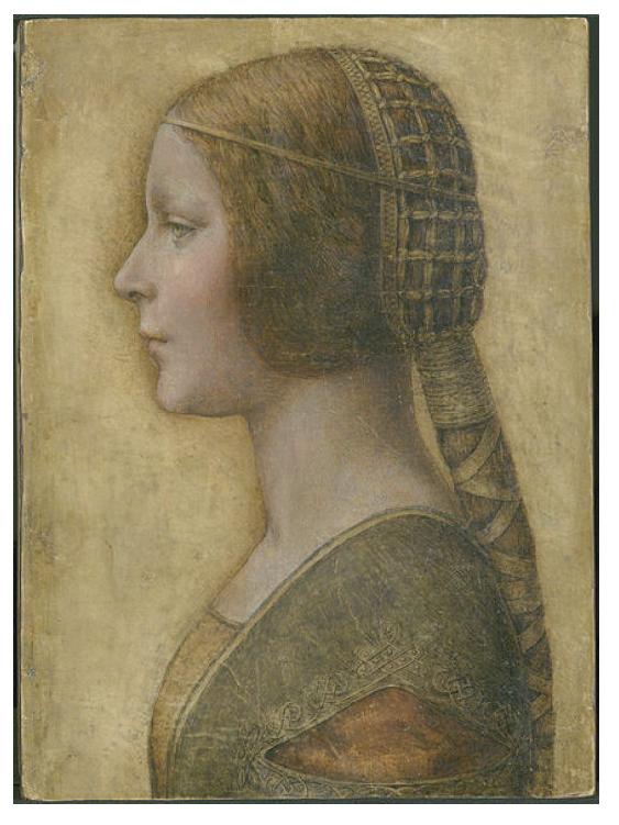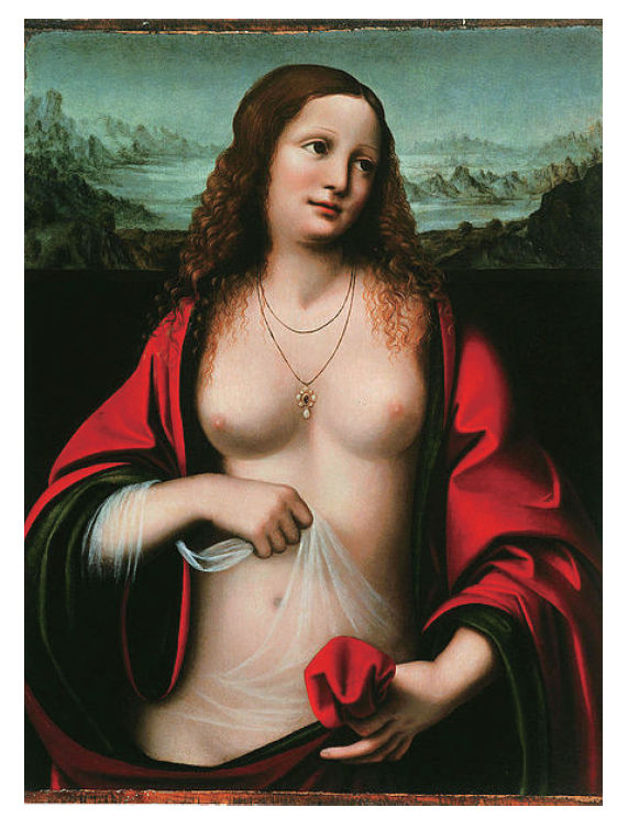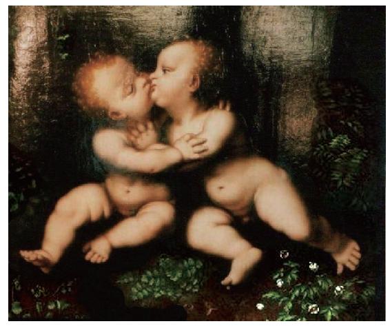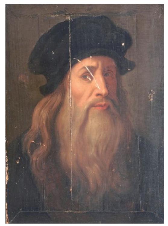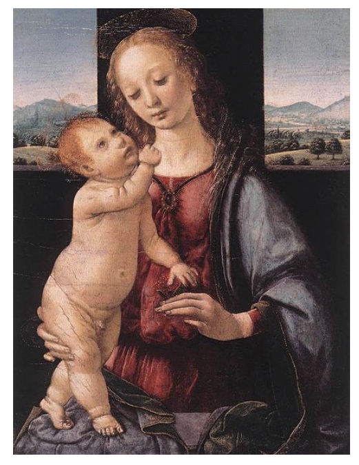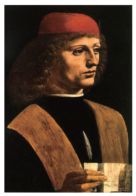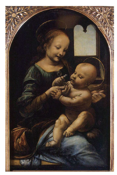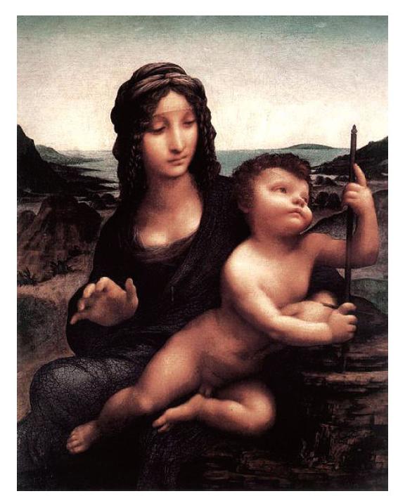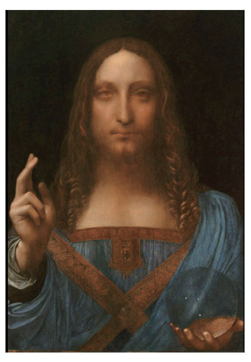 有争议,传统观点认为是弗拉·巴尔托洛梅奥(Fra Bartolomeo)的作品,但画上发现了达·芬奇的指纹