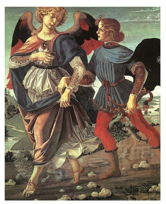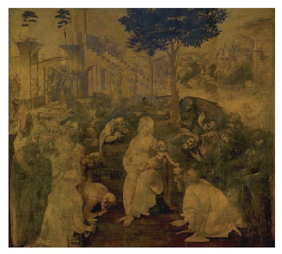 达·芬奇绘制了鱼和小狗(已经褪色),其他部分由其老师韦罗基奥完成