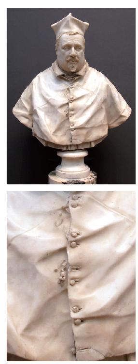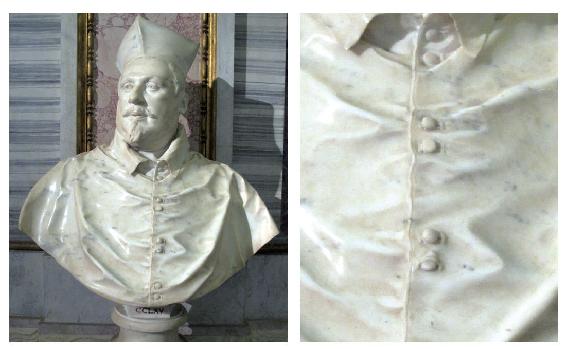 贝尔尼尼雕塑的西皮欧内主教半身像及其衣扣细节