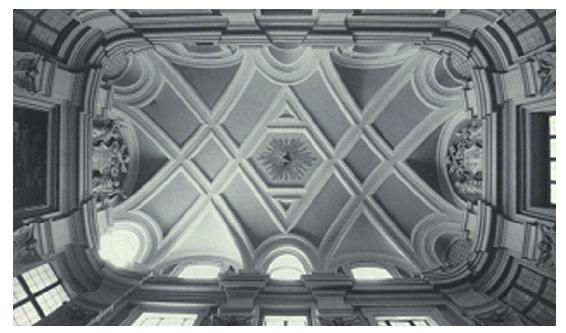 波洛米尼设计的传信部宫外立面,门廊横梁凹凸有致,立柱则是一对对并排使用的,门窗上装饰着各种圆形、波浪形曲线,极富动感