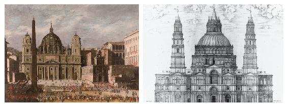 贝尔尼尼承接了圣彼得大教堂的又一项工程——在正门两侧构筑一对钟楼。他曾经为罗马万神庙加盖过两个钟楼,由于其修长的外形打破了万神庙古典庄重的整体造型,被人们讽刺为“驴耳朵”(1852年对万神庙进行修缮时,这一对扎眼的钟楼被彻底拆除了)。而这一次,贝尔尼尼竟然要把“驴耳朵”添加在天主教的至圣之地圣彼得大教堂之上!