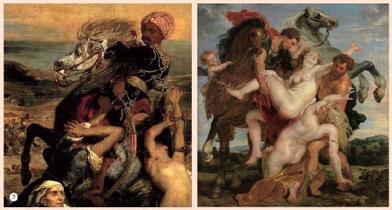 右图为鲁本斯的《劫掠留西帕斯的女儿》(The Rape of the Daughters of Leucippus),现藏于慕尼黑老绘画美术馆