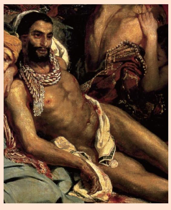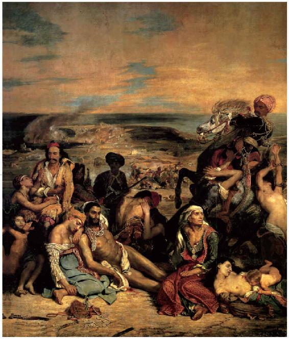 德拉克洛瓦1824年法国学院沙龙展的参展作品《希阿岛的屠杀》,现藏于巴黎卢浮宫