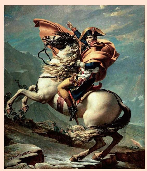 大卫的名画《穿越阿尔卑斯山的拿破仑》(Napoleon Crossing the Alps),堪称古典主义历史战争题材的代表