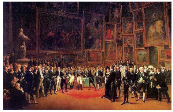 弗朗索瓦·艾姆(Francois-Joseph Heim)绘制的法王为安格尔授勋的场景,背景墙上《路易十三的誓言》清晰可见