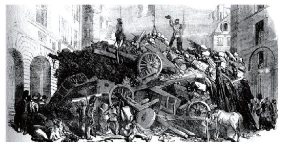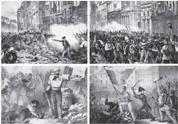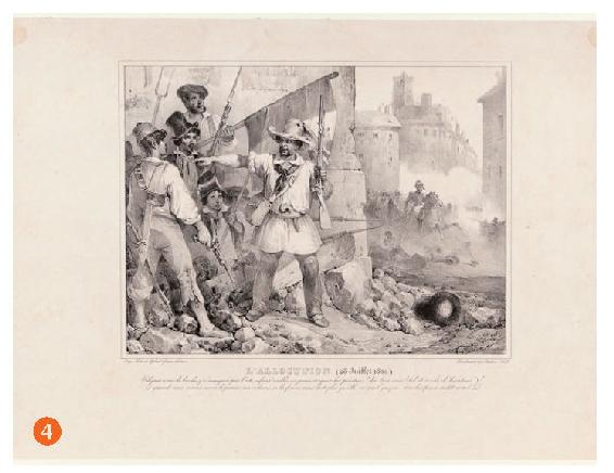查理特(Nicolas Toussaint Charlet)制作的关于“光荣三日”的版画,其中很多形象被德拉克洛瓦借鉴用到了《自由领导人民》中