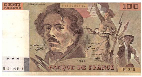德拉克洛瓦的头像和他的《自由领导人民》被印在了法郎上