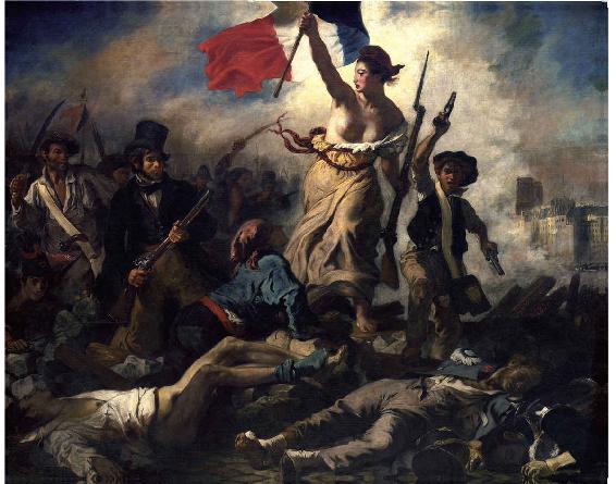 德拉克洛瓦1831年法国学院沙龙展参展作品,也是他最广为人知的代表作《自由领导人民》,现藏于巴黎卢浮宫