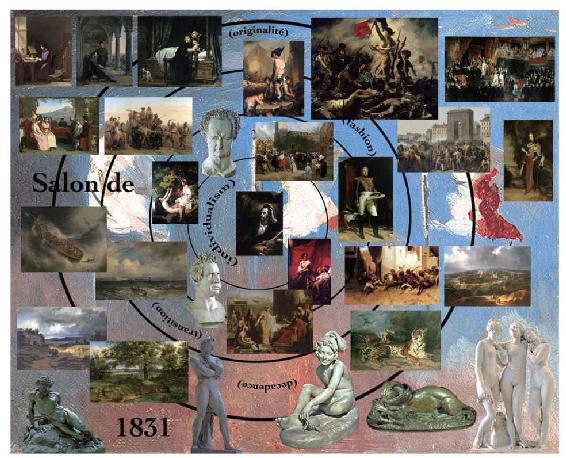 1831年的沙龙展共3182件作品参展,其规模超过以往各届。有23件反映“七月革命”题材的作品入围。其中最引人瞩目的就是德拉克洛瓦的《自由领导人民》(Liberty Leading the People)。