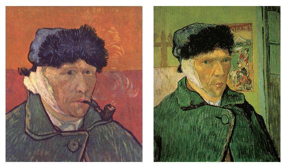 梵高割耳后的《自画像》,左图收藏于伦敦科陶德艺术学院,右图为私人收藏